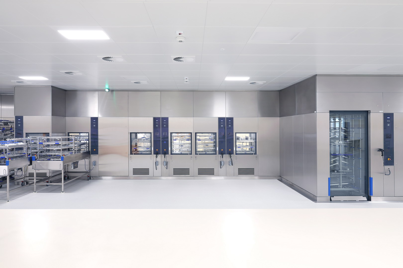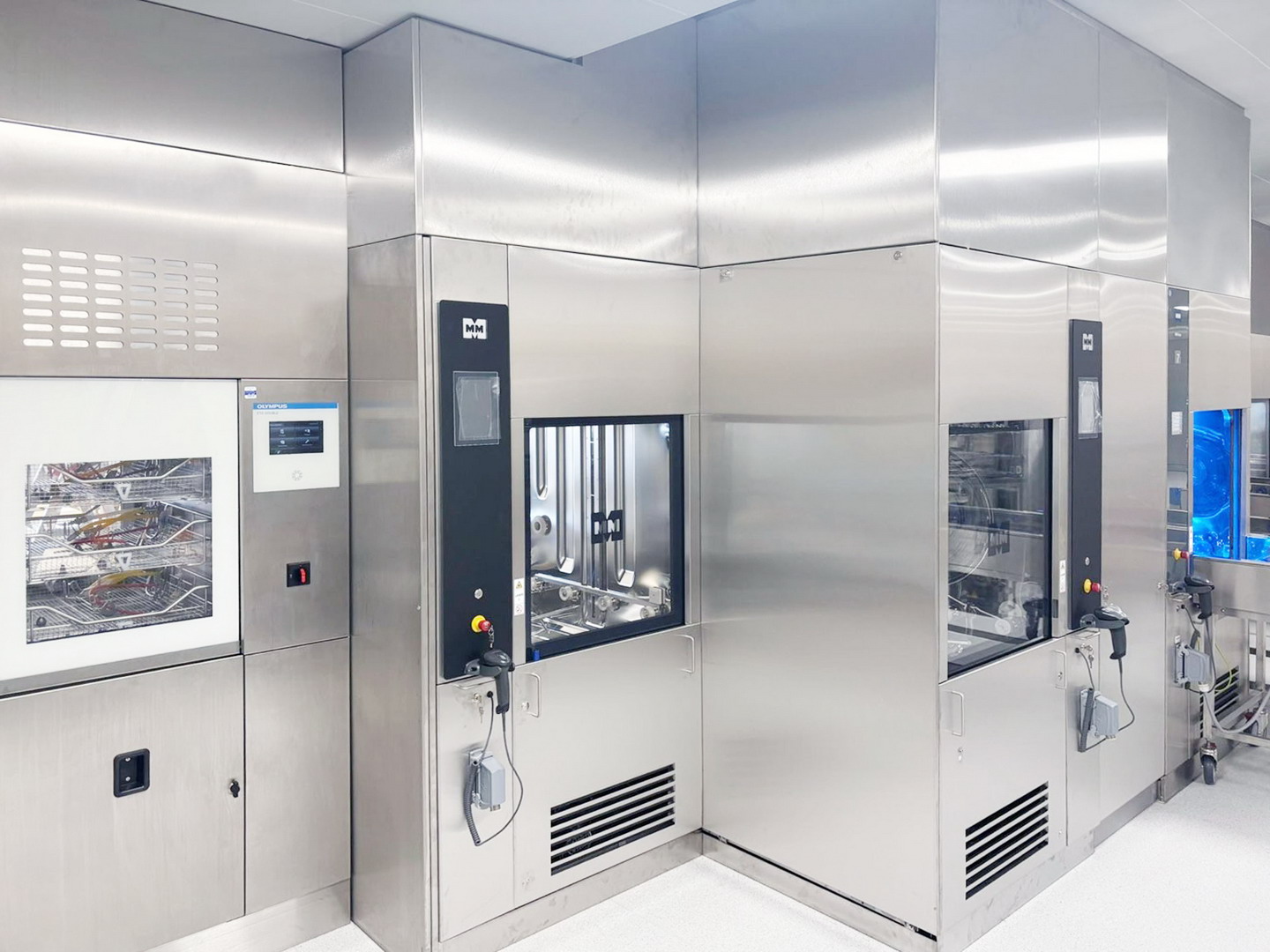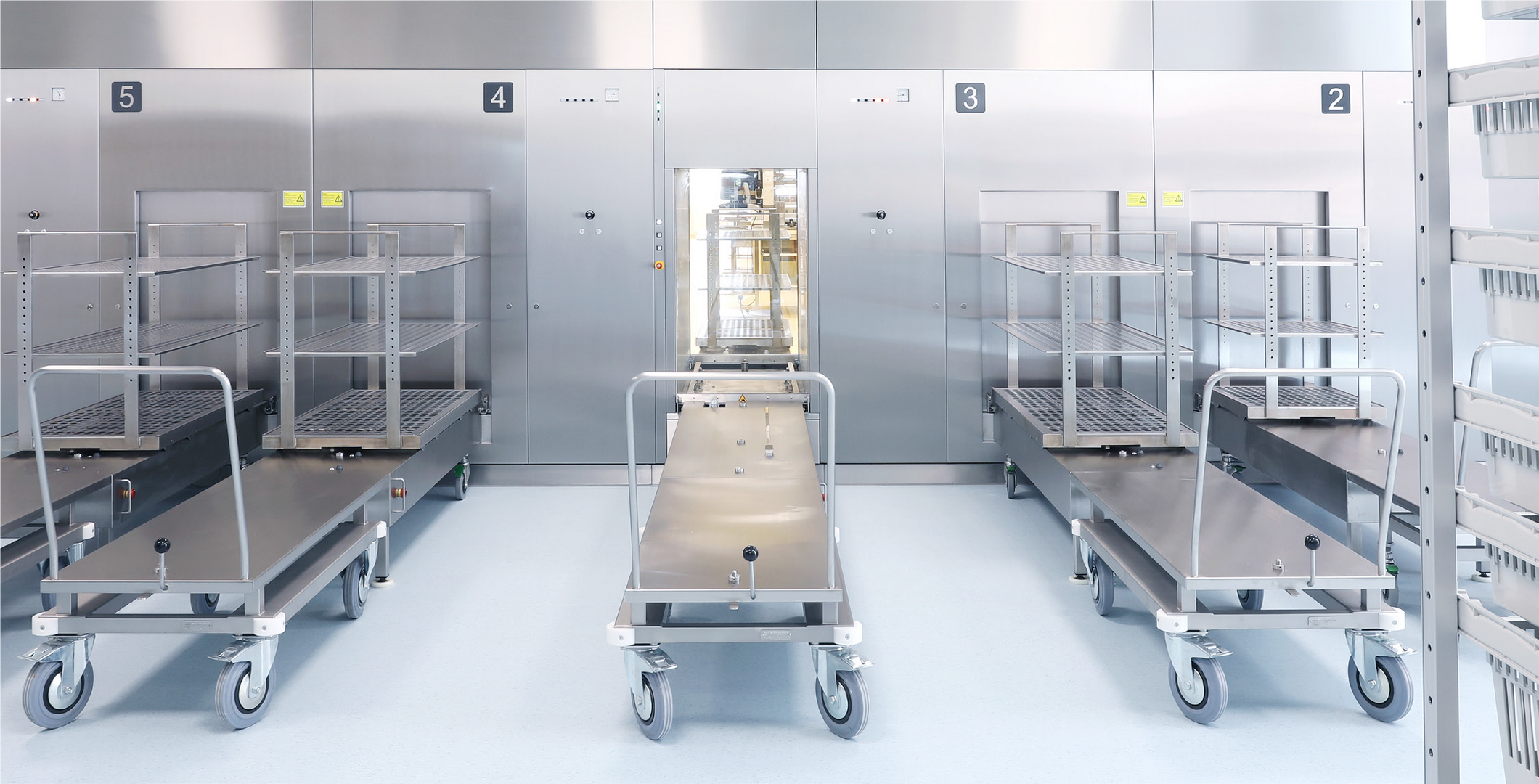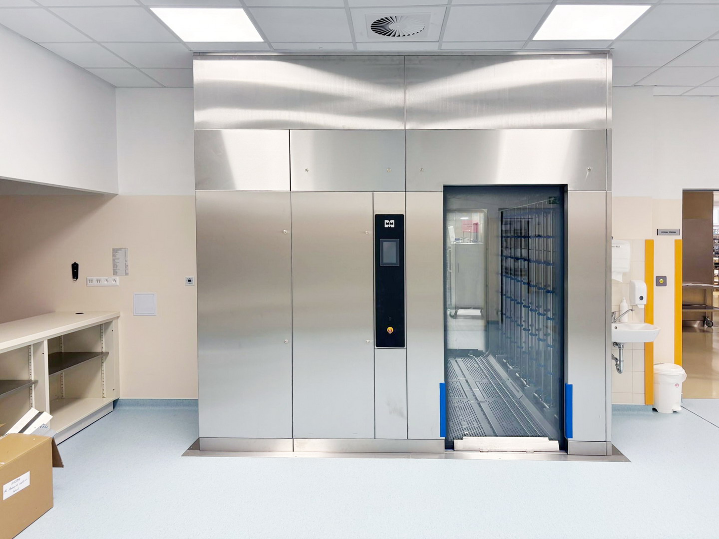 Speciálně navržené zařízení pro vracení sterilizačních a mycích vozíků umožňuje jejich průchod mimo sterilizační a mycí komory, čímž se urychluje oběh nástrojů a eliminuje zbytečné prostoje. Vše doplňuje systém velkoplošných obrazovek, které v reálném čase zobrazují provozní stavy sterilizátorů a mycích přístrojů, včetně zbývajícího času jednotlivých cyklů.