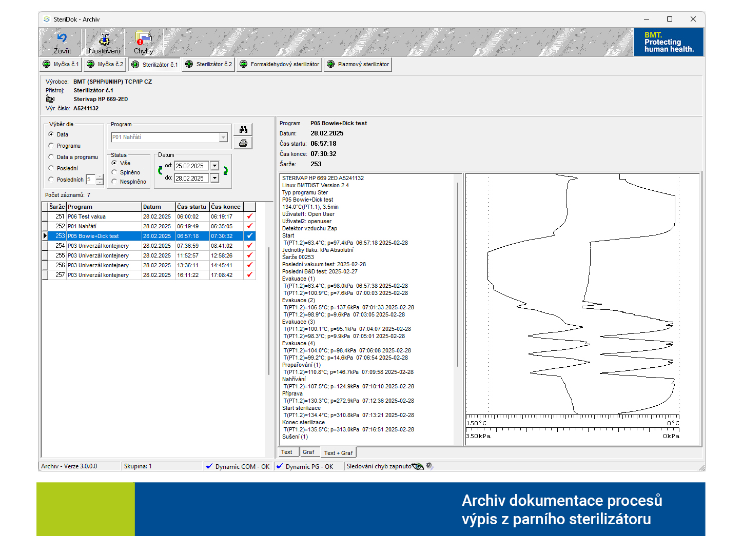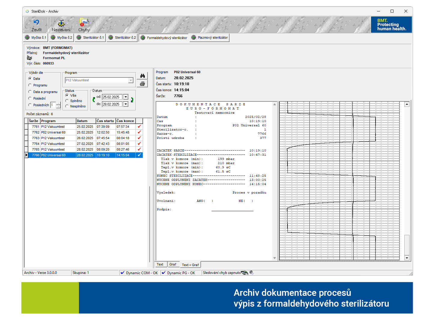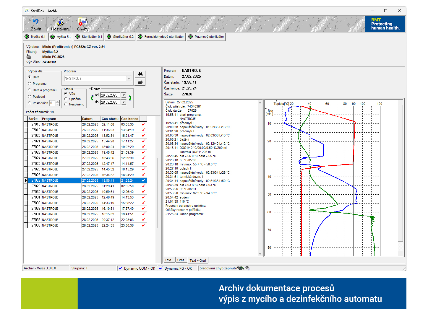 Systém dokumentace procesů pro mycí a dezinfekční automaty a sterilizátory